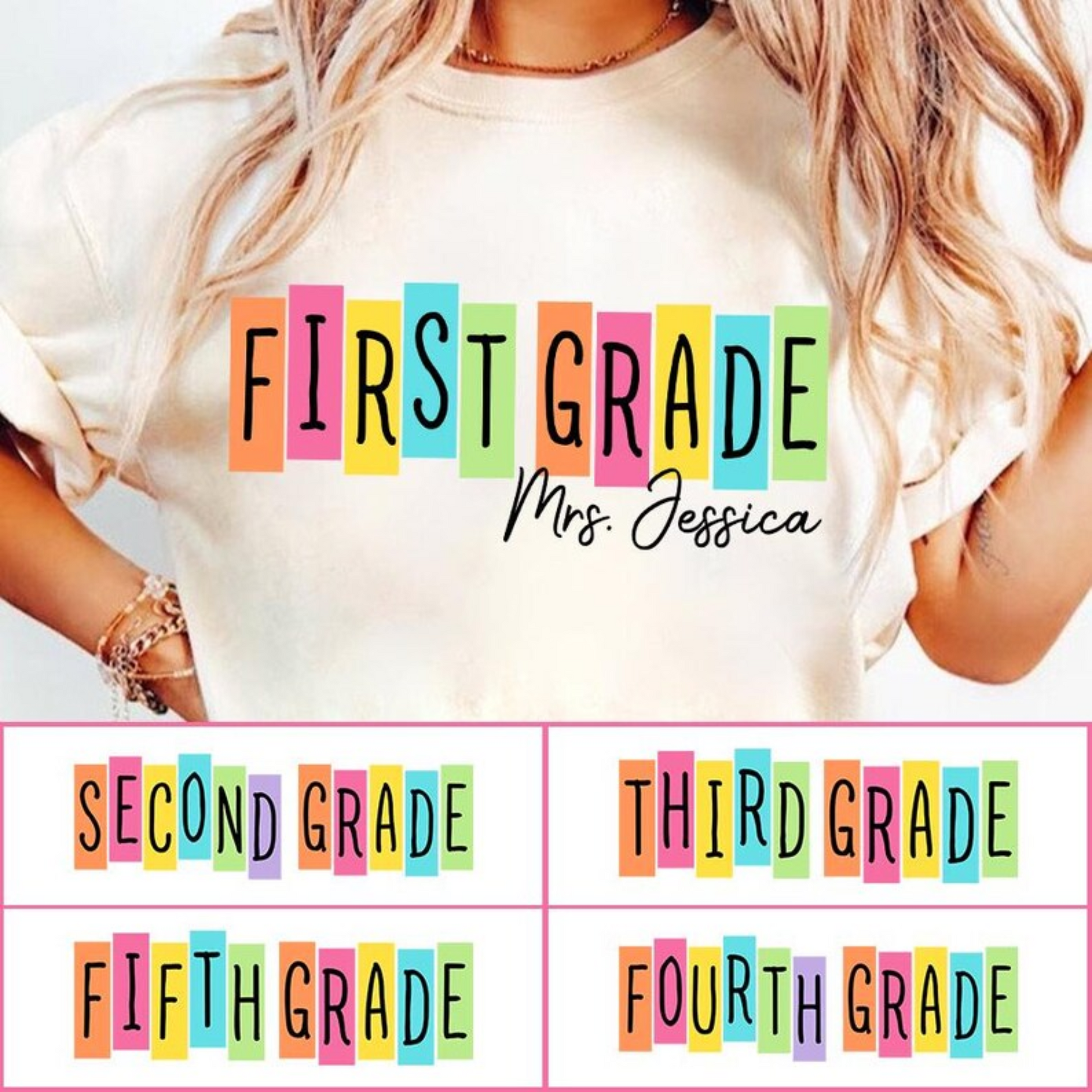 Simply add your grade and an optional custom name (teacher, kiddo, etc.) to create the perfect shirt for yourself or as a gift!